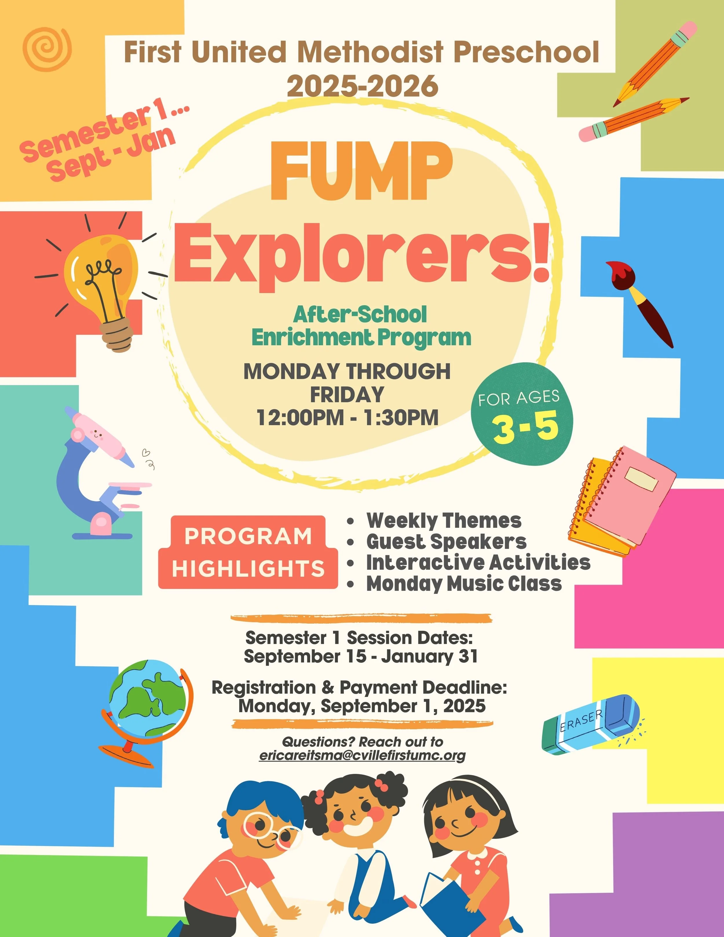 Join us for FUMP Explorers Monday - Friday from 12:00-1:30pm.